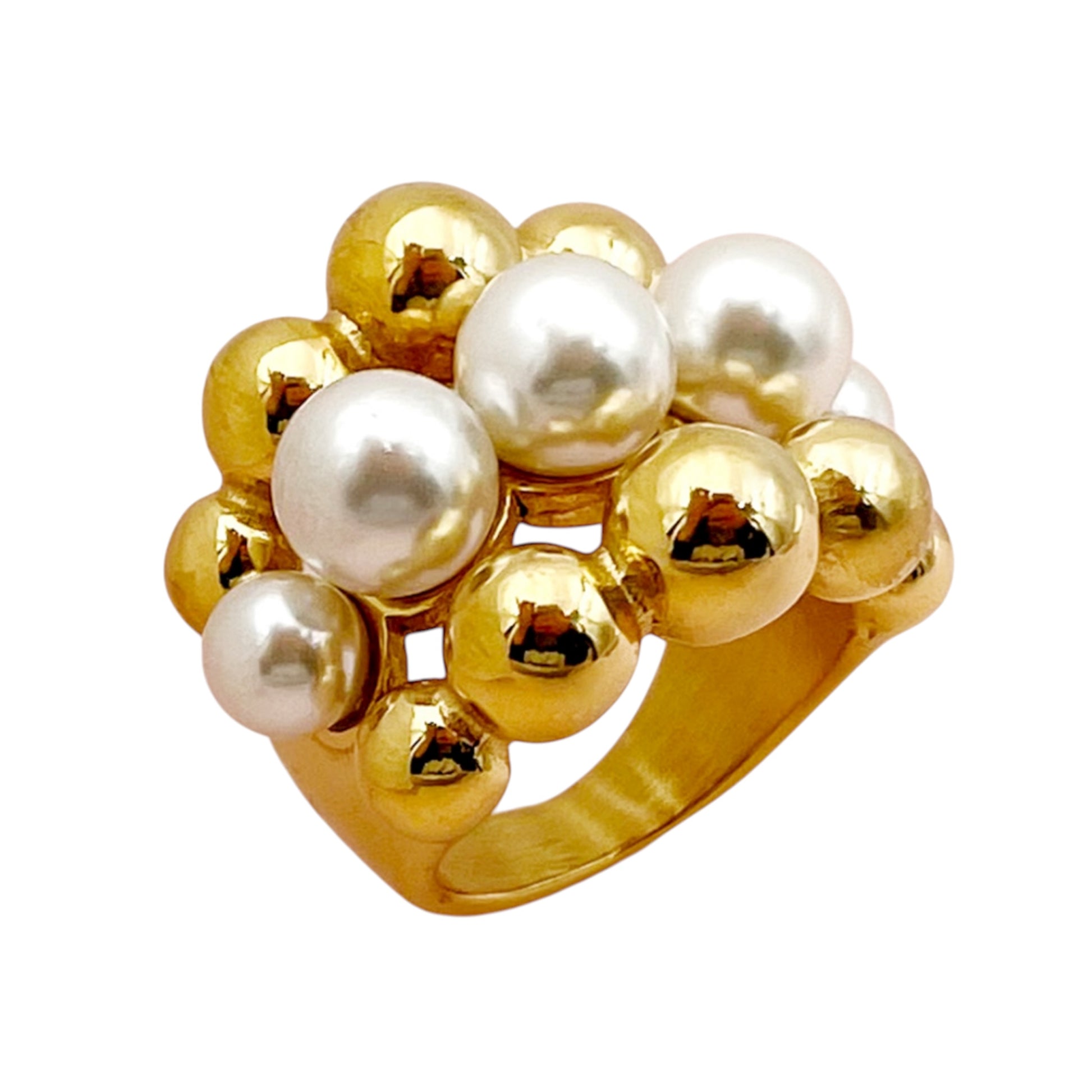Anillo de Acero Inoxidable con Perlas de Imitación Resistente al Agua y al Deslustre.