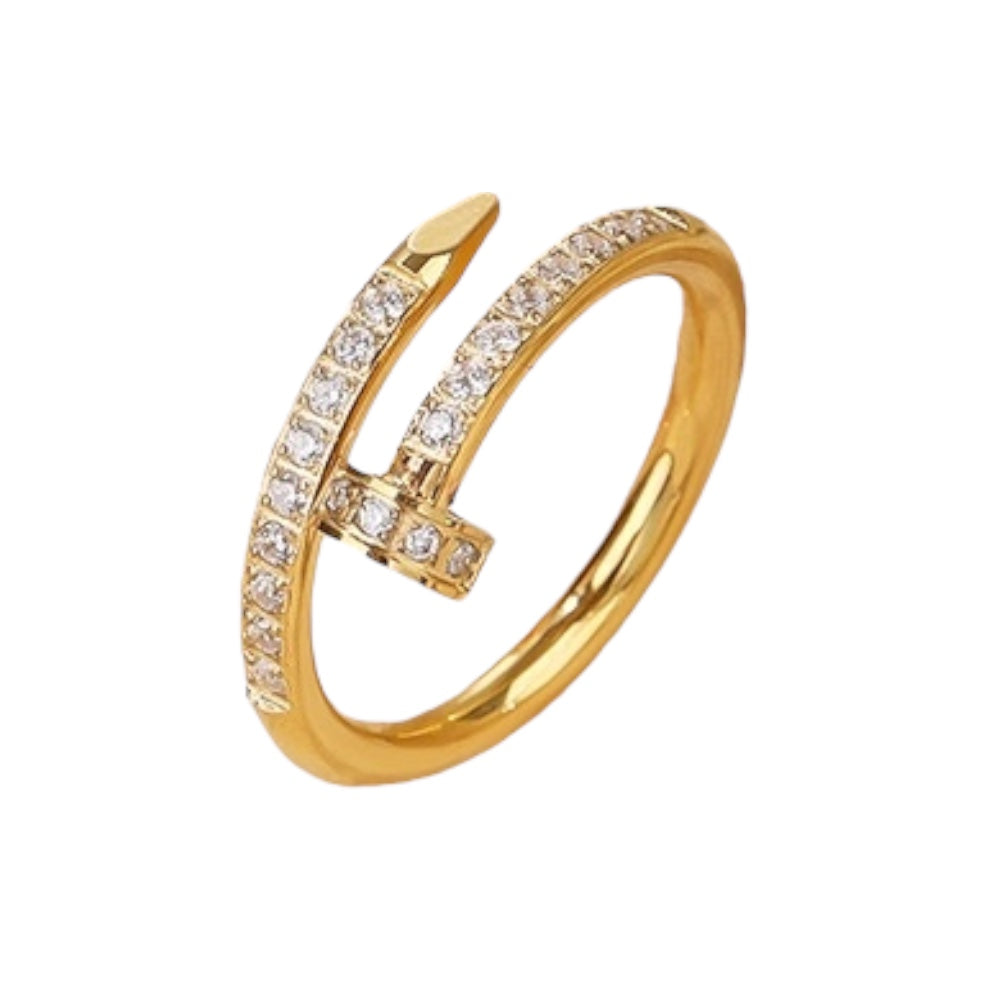 Anillo de Acero Titanio Enchapado con Piedras Zirconia Resistente al Agua y al Deslustre.