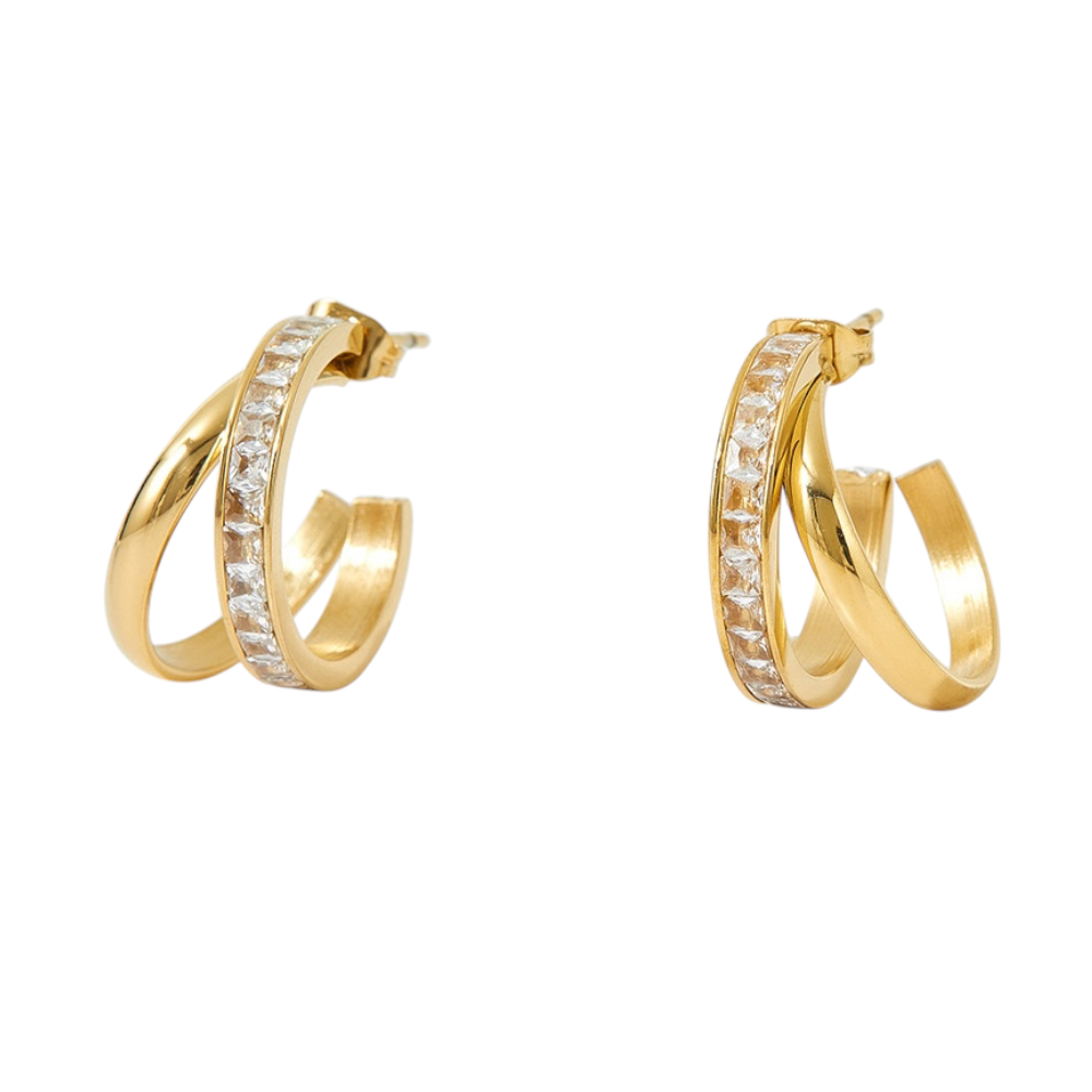 Aretes de Acero Inoxidable con Piedras Zirconia Resistente al Agua y al Deslustre.