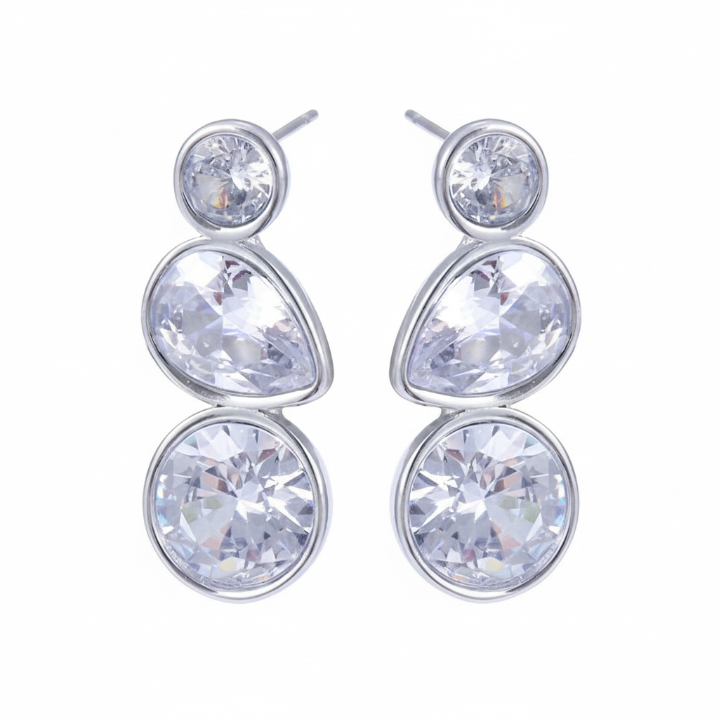 Aretes de Acero Inoxidable con Piedras Zirconia Resistente al Agua y al Deslustre.