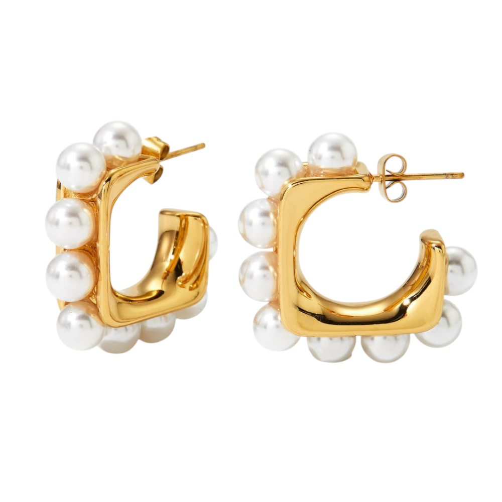 Aretes de Acero Inoxidable con Perlas Artificiales Resistente al Agua y al Deslustre.