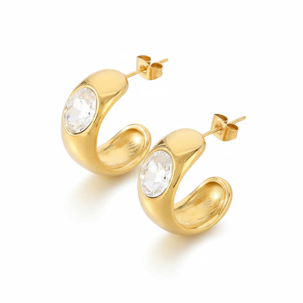 Aretes de Acero Inoxidable con Piedras Zirconia Resistente al Agua y al Deslustre.