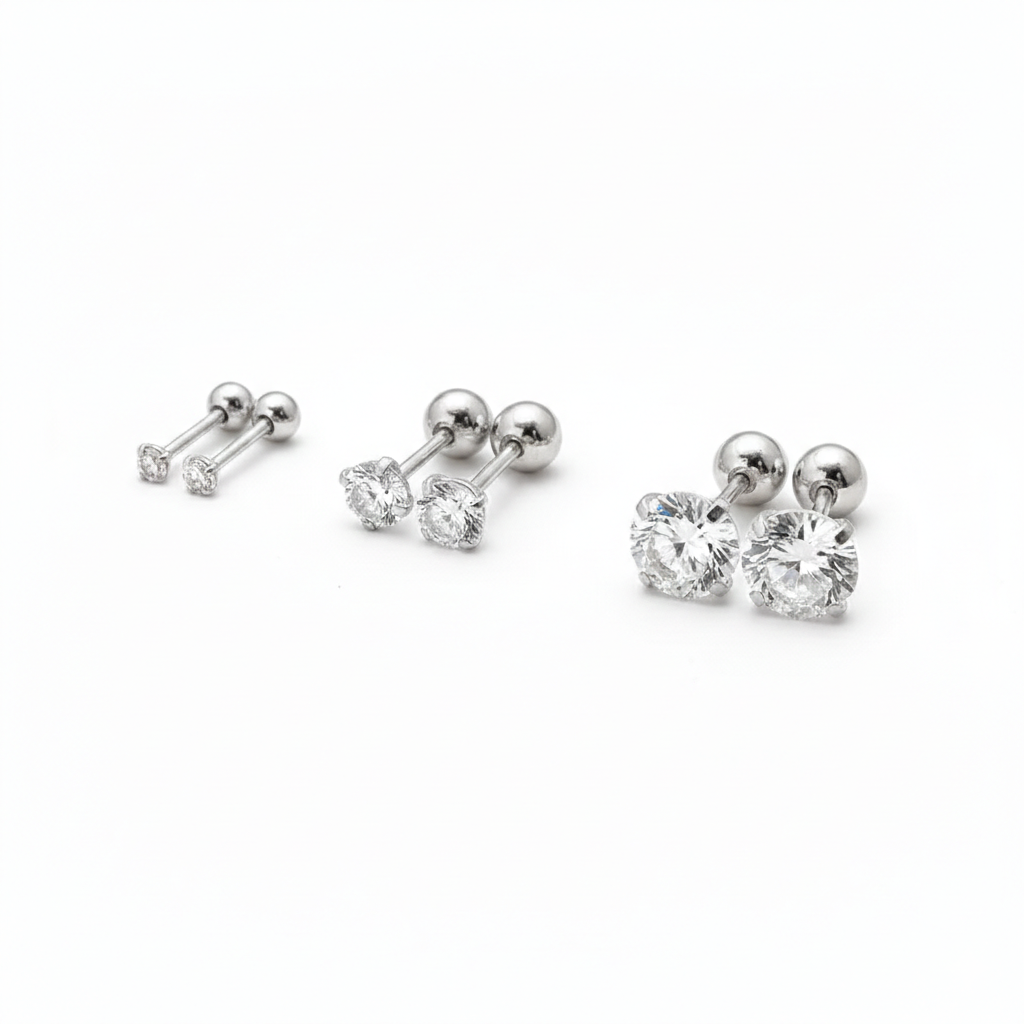 Piercing de Acero Inoxidable con Piedra Zirconia Resistente al Agua y al Deslustre.